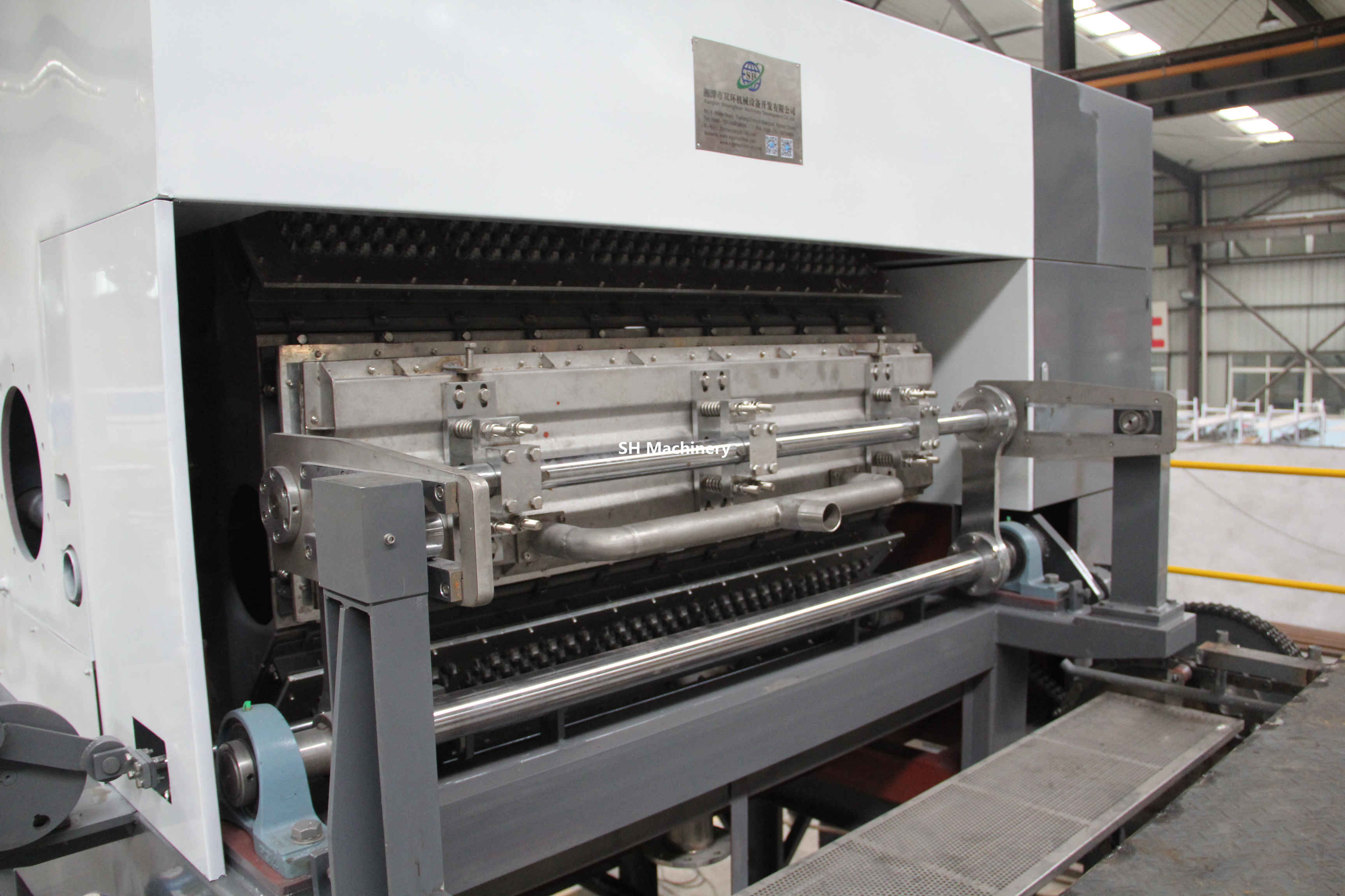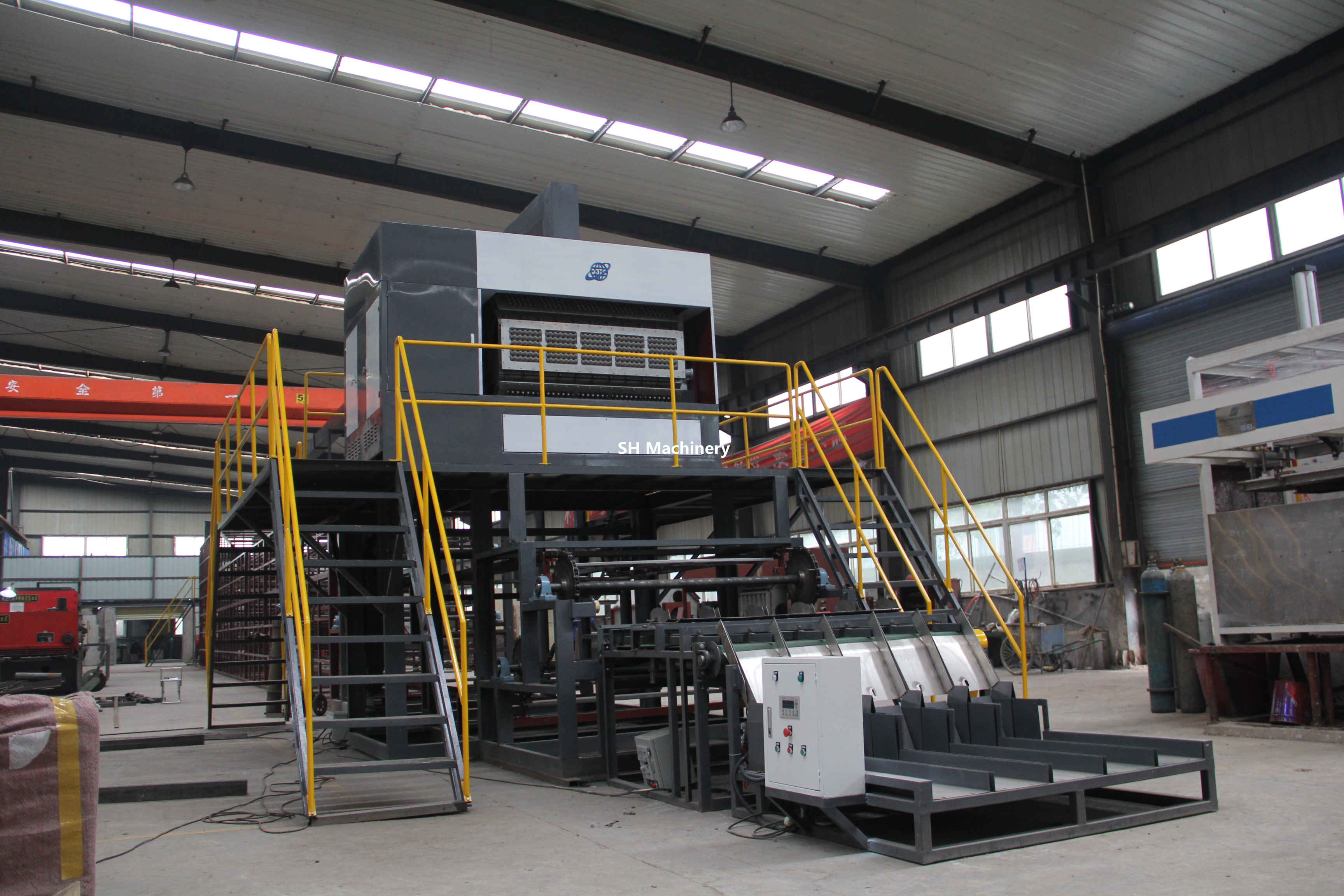 加納6000片每小時(shí)蛋托生產(chǎn)線多層金屬烘干線設(shè)備全貌
