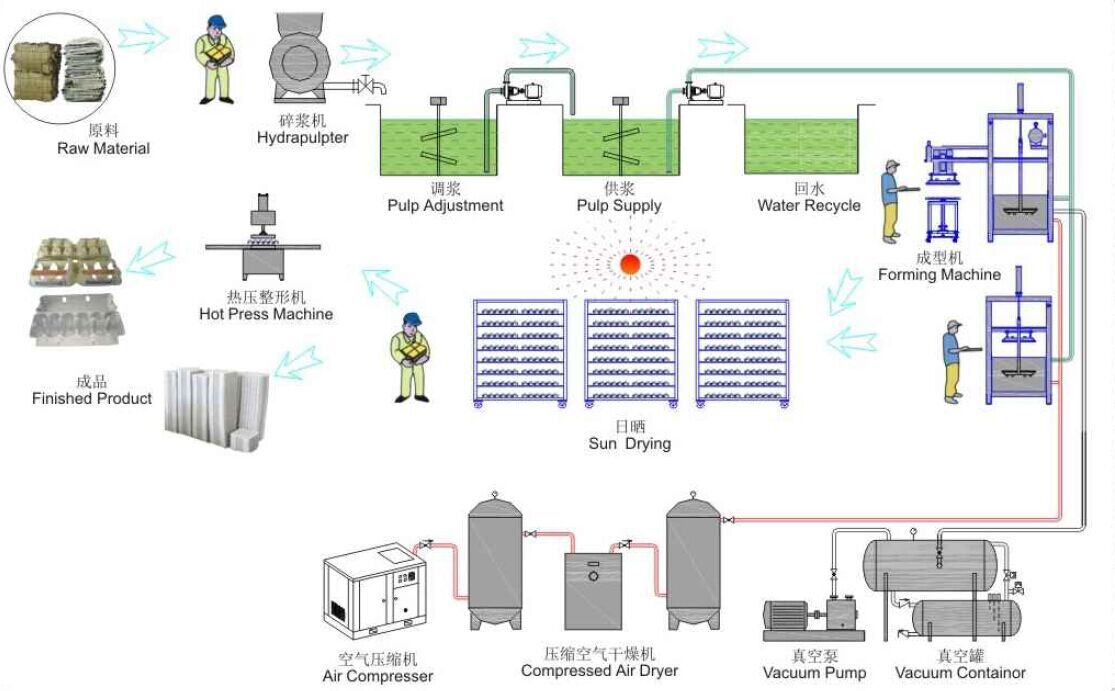 It is a applicable to manufacturing large quantity of pulp molding products.